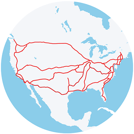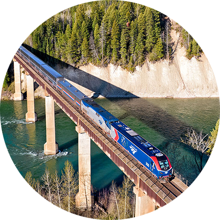 Our trains consume less energy and create fewer carbon emissions on average on a per-passenger-mile basis than driving or flying.